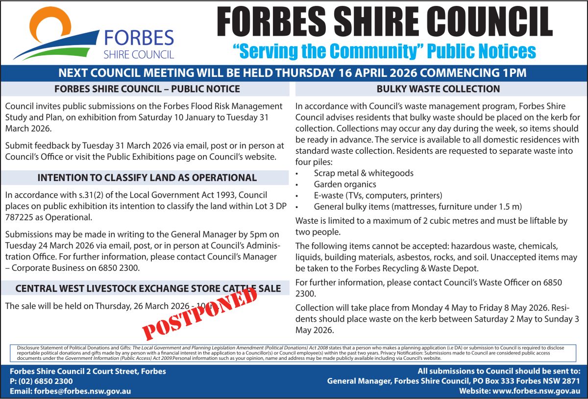 In response to the NSW Government’s introduction of new social media age restrictions, Forbes Shire Council has refreshed its youth communication channels to ensure young people and their families … [Read More...]