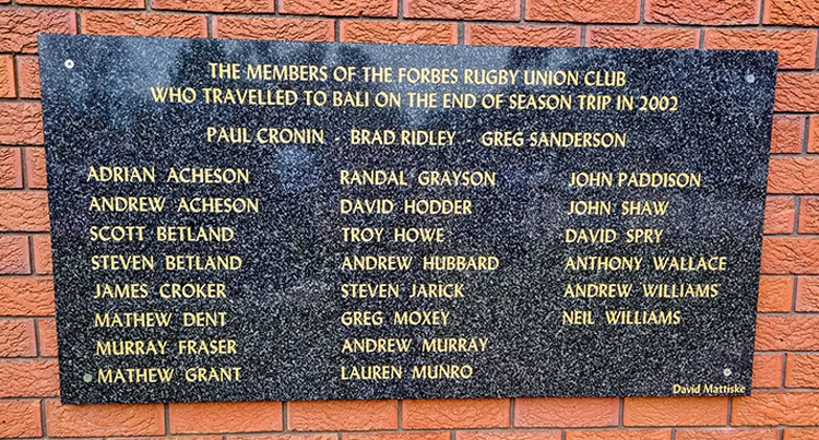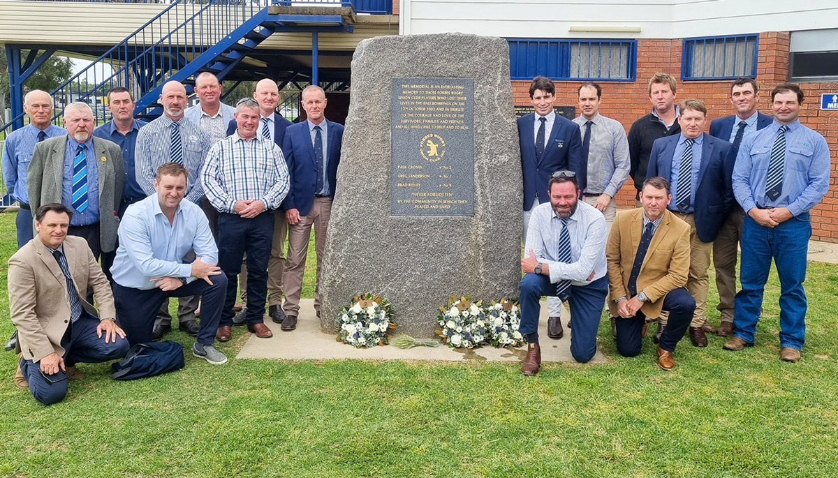 The Forbes Rugby Club organised a memorial service to remember the three members who did not return and to stand with the survivors, their families and friends.