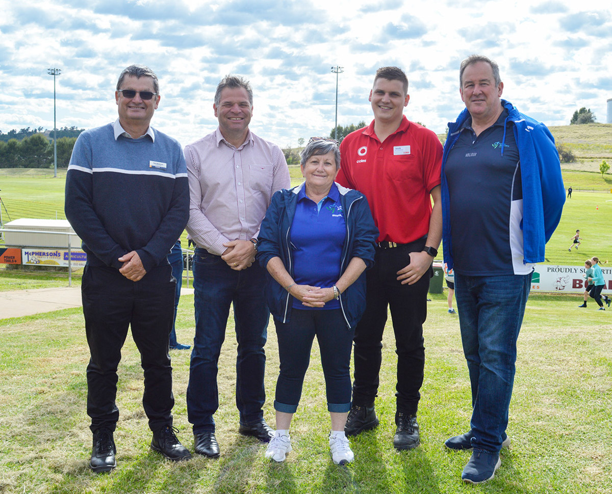 Pictured (L-R) are Parkes Shire Deputy Mayor Neil Westcott, Phil Donato MP, Parkes Little Athletics President Kerrie Edwards, Manager Parkes Coles Jacob Schneider and Western Plains Zone Coordinator Bruce Cox.