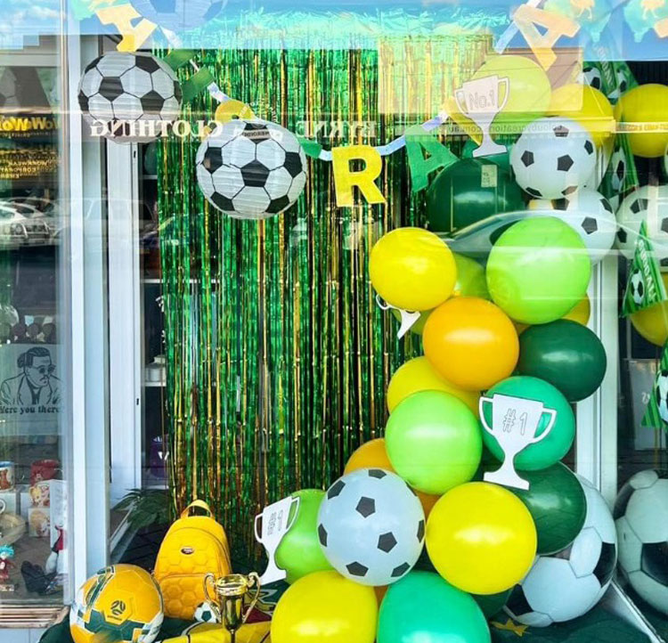 The Colouby Creations shop front in Parkes is beautifully decorated in yellow and green in support of the Matildas.
