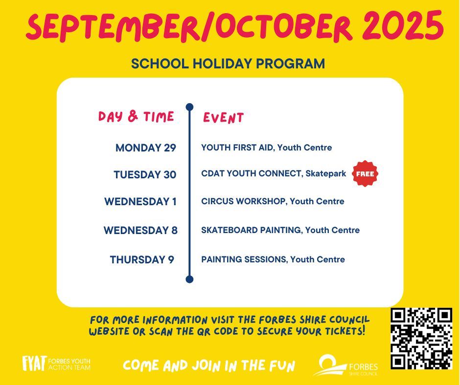 Forbes Shire Council: Community Funding Program applications now open. Notfor-profit groups in Forbes can apply for up to $5,000 to support projects in: Sport & Recreation, Culture & the Arts, Community Services and Rural Village Enhancement. Find out more or apply: www.forbes.nsw.gov.au. Applications for this round close 31 January 2026. Need help with your application? Book an appointment 6850 2300 or at community@forbes.nsw.gov.au