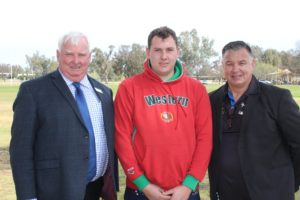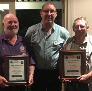 CONGRATULATIONS… Two hard working Forbes & District Lions Club members were honoured with the “James D Richardson” award at the Lions meeting held last week Tuesday. Graham Williams (middle) congratulated and thanked Raymond Judge (left) and Ian Bennett (right) for their hard work and dedication to Lions International and the community of Forbes.