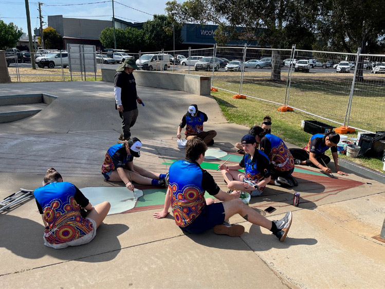 IMAGE: The participants worked with an artist and Forbes Shire Council on a mural at the Forbes Skate Park.