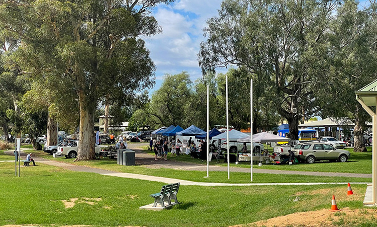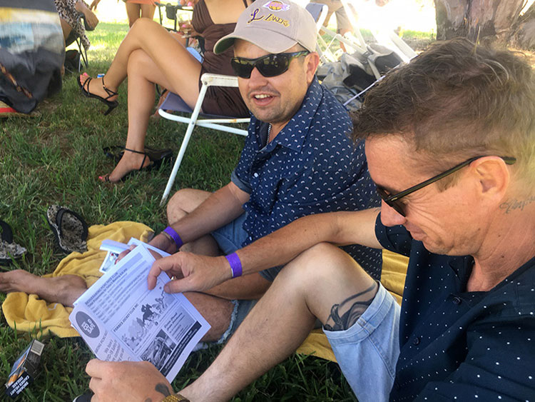 BACK AT THE TRACK: Race goers from even as far away as Darwin turned up for the 2022 edition of the Total Wear Australia Bedgerabong Picnic Cup but for local Cam Shepherd (left) and his friends, it was only a short bus ride to the racecourse.