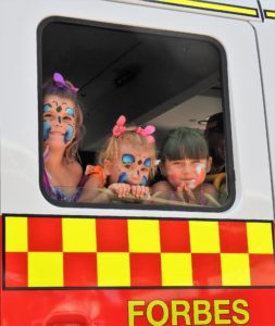 Ava and Ebony Percy with their friend, Jazz Nash loved their turn in the Fire Engine at the 60th anniversary celebrations of the Forbes North Public School last Saturday.