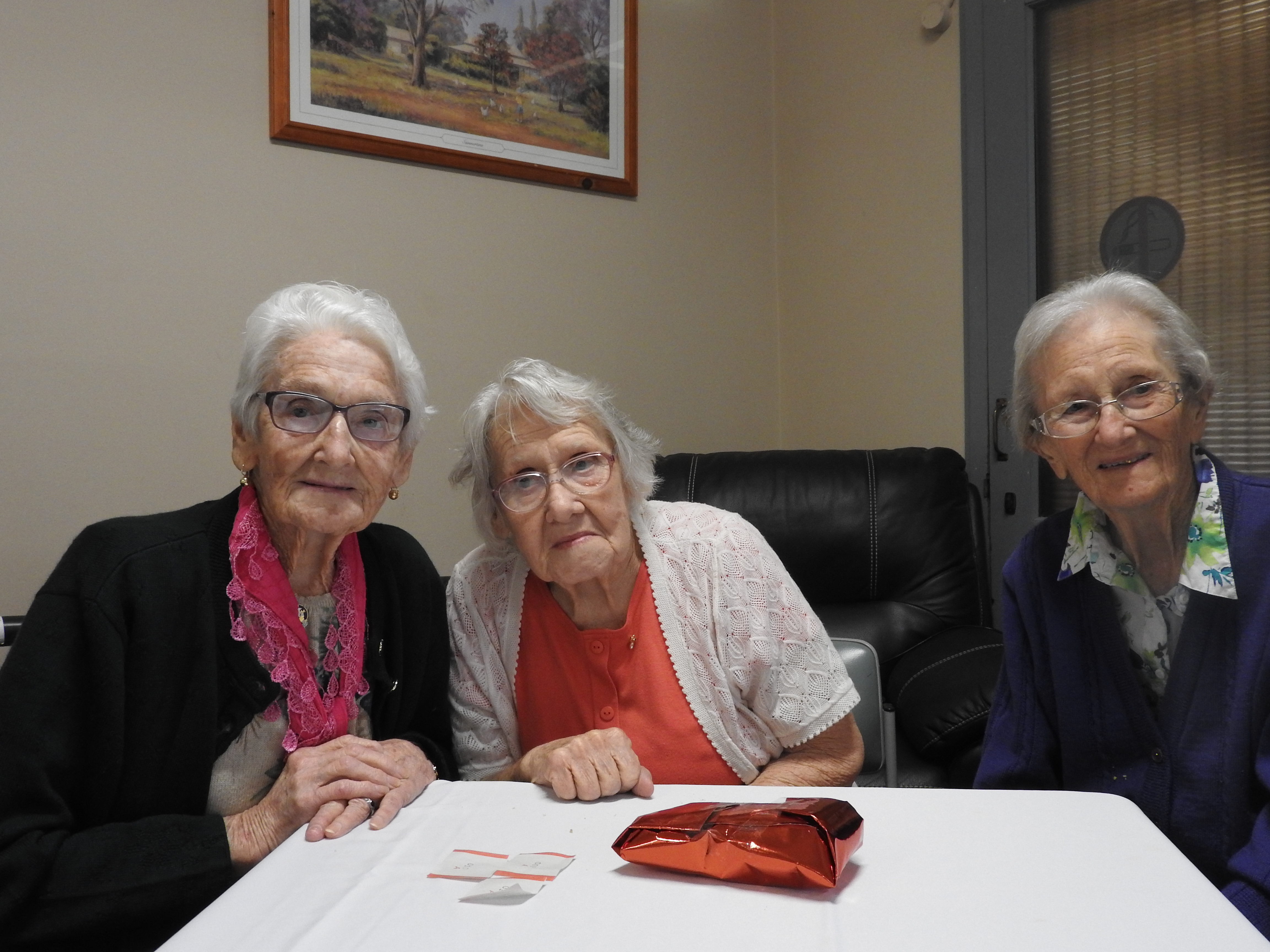 Marg McDonald, Marie Lambert and Betty Lamrock enjoyed the Seniors Week morning tea at Catholic Healthcare Mater Aged Care on Monday.