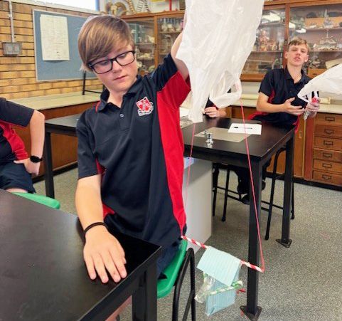 What does it take to keep an egg safe when dropped from a height? Mrs Pays Year 8 Science students put this question to the test recently.