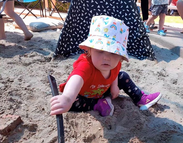 Elsie Green pictured having fun playing in the sand pit.