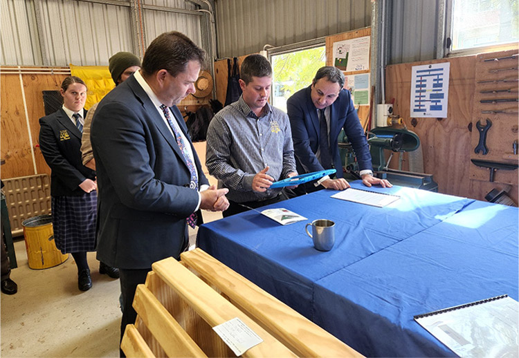 The Deputy Secretary of the NSW Department of Education, Mr Murat Dizdar came to Forbes North as part of a scheduled visit to look at public education in Forbes. Mr Dizdar arrived right on time and spent the afternoon at Forbes North. This significant visit included seeing 3/4P and Miss Parker in the kitchen and garden, preparing and eating vegetable linguini with produce harvested from our very own garden. The touring party then went to Miss McMillan in 1/2M who were studying Science and the life cycle and botany of troublesome weeds on our farms and properties. In 3/4F, Miss Fliedner led the demonstration of investigating decimal numbers less than 1 and placing them on number lines. Our visitors then enjoyed time in our support unit with K-6J and Miss Jones who were preparingfor Father’s Day, and finally our esteemedguests were astounded by the FNPS Wiradjuri choir performing no less than foursongs