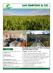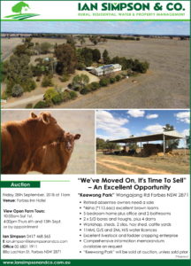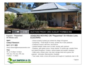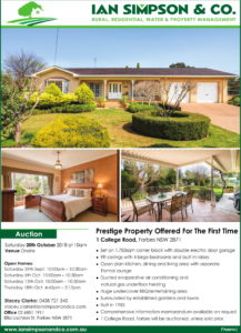 Ian Simpson and Co has an impressive track record with auctions, following on from their March auctions held last week at Condobolin, Lake Cargelligo and Forbes. Ian Simpson and Co. held eight auctions over three days with a 50% clearance rate achieved. At Condobolin, the property at 8 Alldis Street sold under the hammer, as did 107 Flint Street, Forbes and 255 Farnell Street, Forbes. One of the properties at 8712 Lachlan Valley Way Forbes sold prior to auction.
