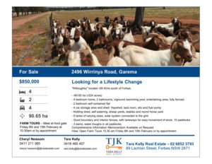 Now for sale is a property located just 28km south of Forbes. Property 2496 Wirrinya Road at Garema is a great opportunity for anybody wishing to purchase their first rural property.