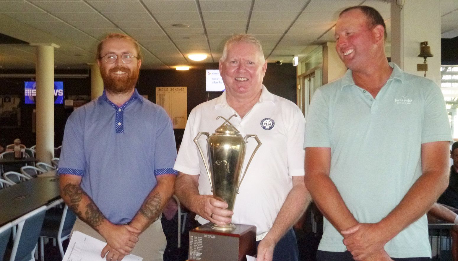 The NTP’s went to: 9th Ben Coultas (Parkes), 18th Jake LeBrocque. Ben converted and was one of the ten 2’s scored on the day. The third hole Super Pin went to Steve Grallelis with a shot to 123 cm. He will tell you it was a magnificent shot but don’t listen to him.
