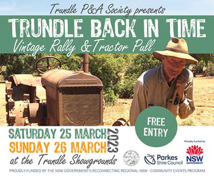 Travel Back In Time To Trundle: Parkes Council is partnering with the Trundle P&A Show Society to host the Trundle Back in Time Vintage Rally & Tractor Pull. Funded by the NSW Governments Reconnecting Regional NSW – Community Events Program, the Trundle P&A Show Society is hosting this event between Saturday 25th and Sunday 26th March at the Trundle Showgrounds.